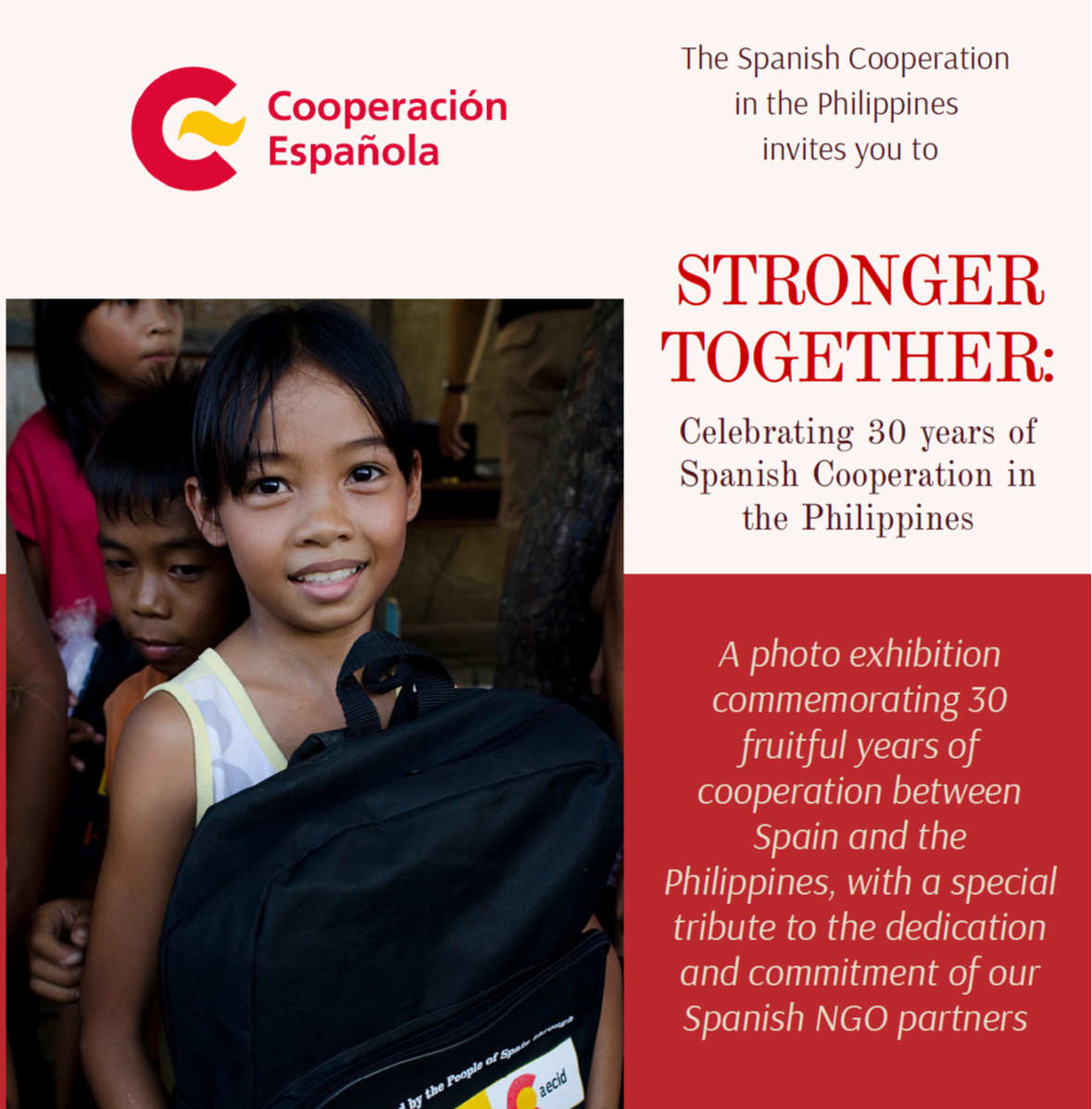 La Oficina de Cooperación Española en Filipinas conmemora los 30 años de la AECID en el país mediante una exposición fotográfica en el Instituto Cervantes de Manila La Oficina de Cooperación...Egipto. Formación a mujeres y jóvenes por un sector turístico socialmente sostenible