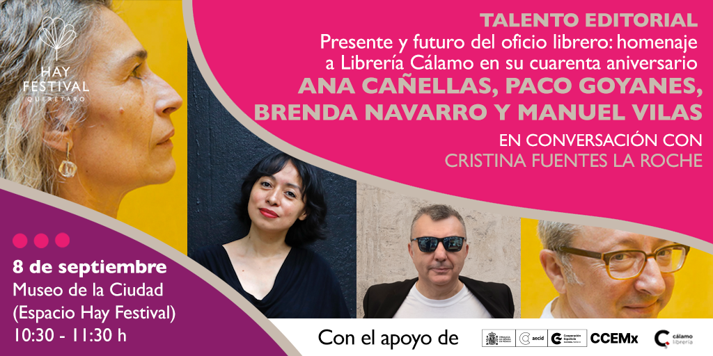 Presente y futuro del oficio librero: homenaje a Librería Cálamo en su cuarenta aniversario. Ana Cañellas, Paco Goyanes, Brenda Navarro y Manuel Vilas en conversación con Cristina Fuentes la Roche | 8 de septiembre / 10:30 - 11:30 h Museo de la Ciudad (Espacio Hay Festival)