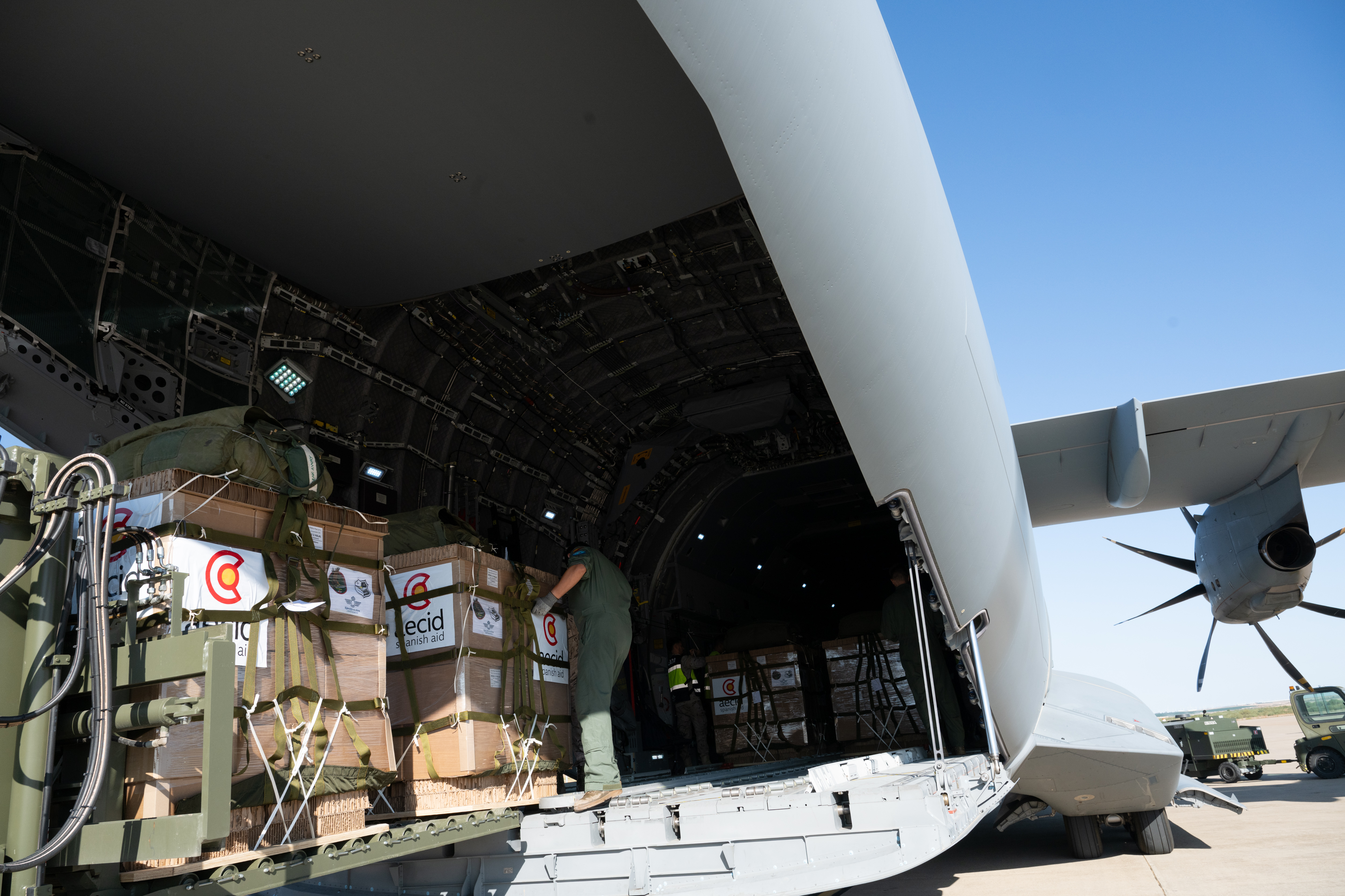 Albares confirma la salida este jueves de la ayuda urgente de AECID hacia Gaza para alimentar a 11.000 personas La distribución se llevará a cabo por el avión A400 del Ejército del Aire, en una...